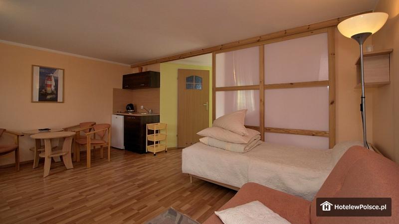 Każdy wyposażony w niewielki aneks kuchenny,łazienkę,