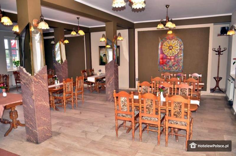 W hotelu znajduje się restauracja z drink-barem, która serwuje dania tradycyjnej kuchni polskiej oraz włoskiej, które kuszą oko i zadziwiają smakiem. Posiadamy dwie sale restauracyjno - bankietowe urządzone w stylu piwnic zamkowych z możliwością przyjęcia 100 osób.