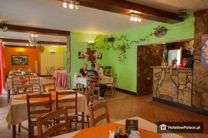 Zapraszamy do eleganckiej, przytulnej restauracji naszego hotelu. Możemy gościć jednorazowo około 50 osób. Z restauracji jest bezpośrednie wyjście na ogród hotelowy, gdzie znajduje się stylowa Chata Góralska Pod Orłem – miejsce wyjątkowych spotkań kulinarnych, biesiad, imprez. Nasz ogród to również miejsce letniego tarasu, gdzie można w ciszy i na świeżym powietrzu delektować się pysznymi daniami i słodką specjalnością naszej kuchni – Domowy sernik + MkCaffe. Dla milusińskich jest również urozmaicony plac zabaw.