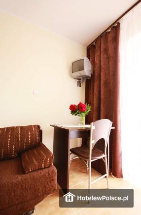 Każdy komfortowo wykończony o wysokim standardzie wyposażony w TV, bezprzewodowy dostęp do Internetu, łazienkę (prysznic, umywalka, ubikacja).